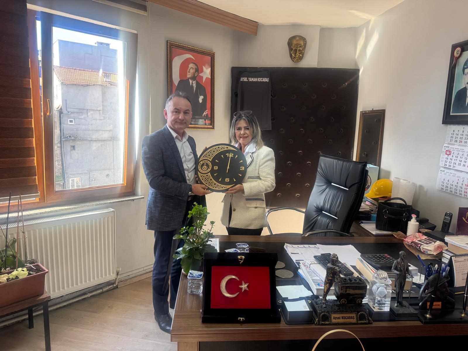 Türk Enerji Sen Batı Karadeniz Şube Başkanı Aydın Çevik, GMİS Merkez Servisleri Şubesi Başkanı Aysel Yaman Kocabaş’a ziyaretin anısı olarak üzerinde sendikalarının logosu işlenmiş bir saat hediye ederken, Şube Başkanı Aysel Yaman Kocabaş, Çevik’e bir madenci heykeli takdim etti.