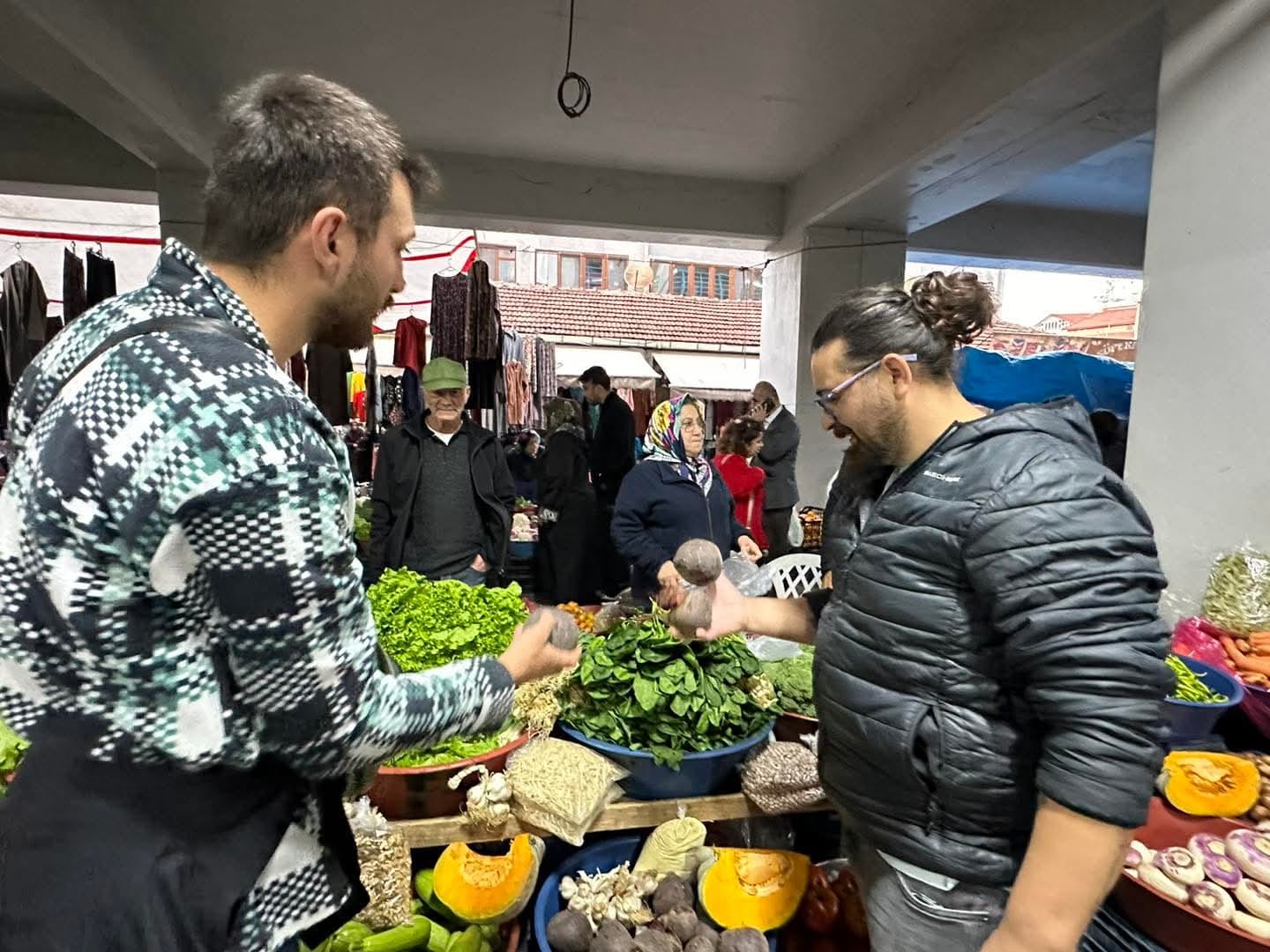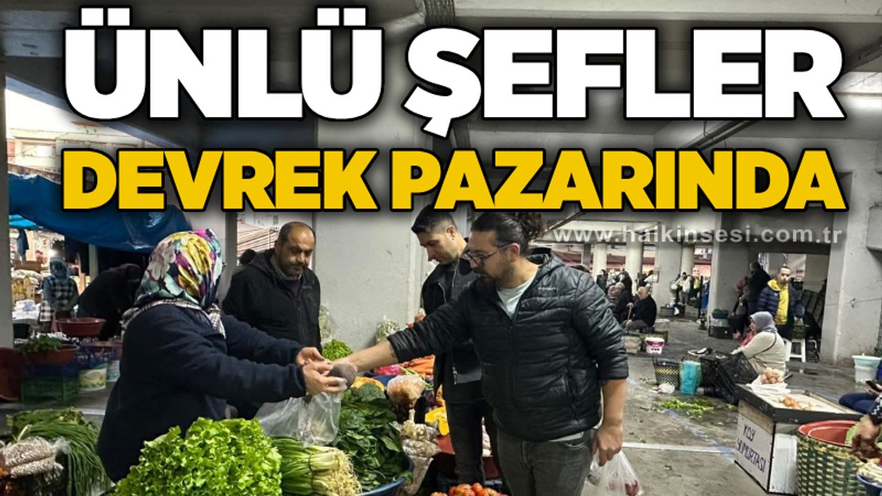 Devrek Meslek Yüksekokulu’nda Söyleşi & Workshop etkinliği için ilçemize gelen şefler Ramazan Baca, Ceyhun Filiz, İbrahim Satan ve Veli Gözel Devrek’in Köylü Pazarında Workshop etkinliğinde kullanmak üzere Mancar( kara lahana) , kestane, mantar, zılbıt konserve… yöresel ürünlerin alışverişini yaptılar.