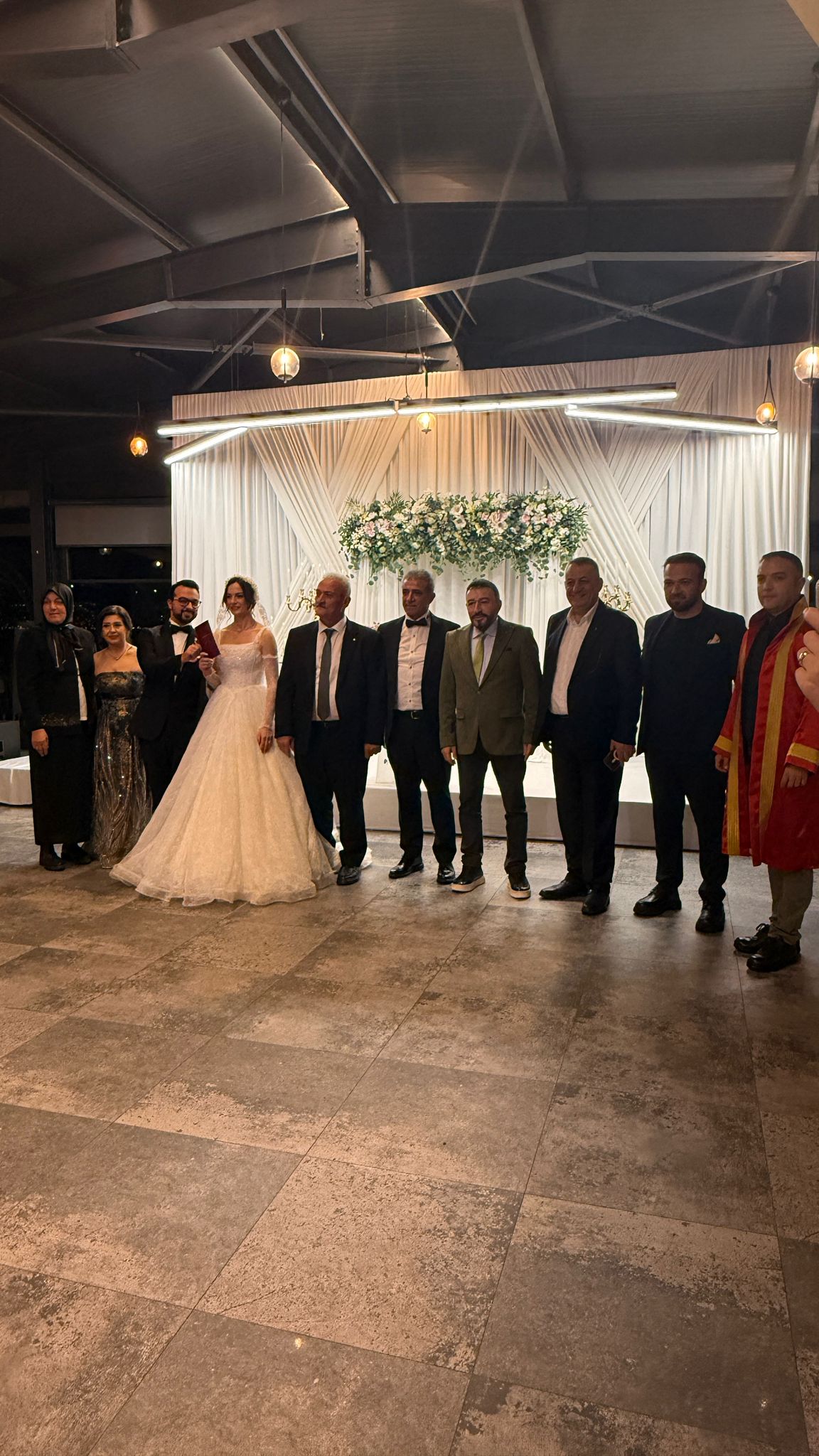 Düğün töreninde genç çiftlerin nikah şahitliğini gündüz sanatçı Mustafa Topaloğlu, Zonguldakspor Onursal Başkanı Romanya'daki iş insanı Sabit Danış, Zonguldakspor FK Kulüp Başkanı Harun Demir yaptı.