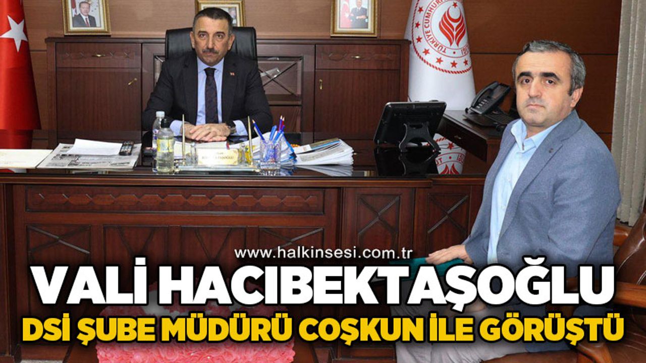 Vali Osman Hacıbektaşoğlu, Devlet Su İşleri (DSİ) Şube Müdürü Kürşat Coşkun’u makamında kabul etti.