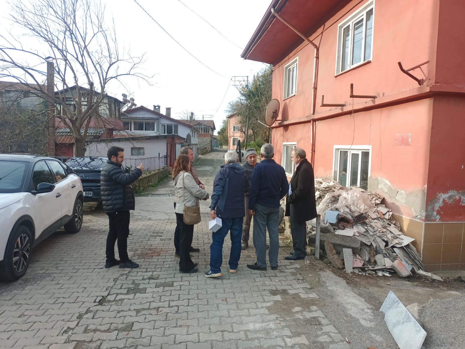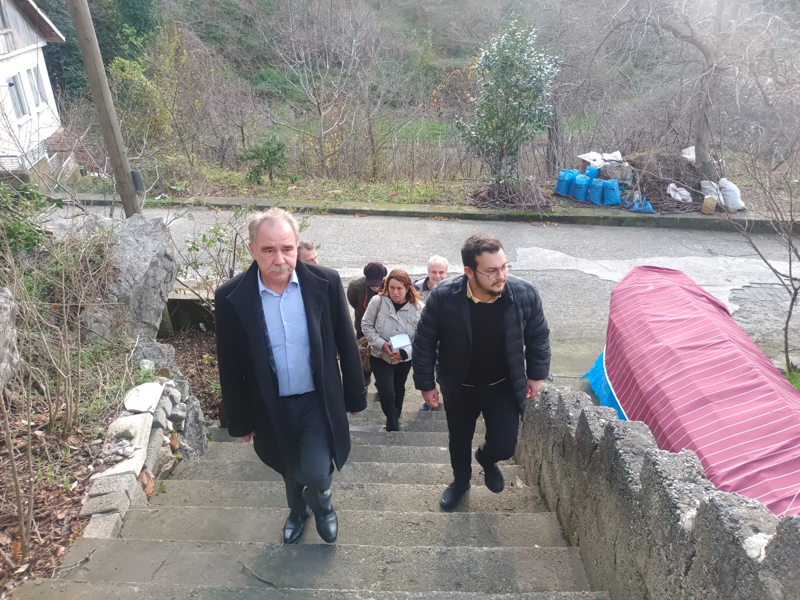 Önceki gün Kilimli Çamlık mahallesine giren çalışma ekibi dağ bayır demeden ev ev çalışıyor. (HaberMerkezi)