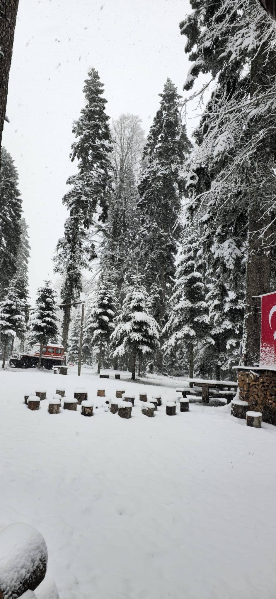 Düzce'de hava sıcaklıkları düştü. Kentte iki gündür aralıklarla devam eden sağanak, hayatı olumsuz etkiledi. Kentin yüksek kesimlerinde sağanak, yerini kar yağışına bıraktı. Kar yağışının aralıklarla devam ettiği bin 450 metre yükseklikteki Sinekli Yaylası ile Samandere, Topuk, Balıklı, Kardüz yaylaları beyaz örtüyle kapladı. Kar yağışının aralıklarla devam ettiği bin 450 metre yükseklikteki Sinekli Yaylası beyaza büründü. Kardüz Yaylasında ise 2 gündür aralıklarla devam eden kar yağışı havadan dron ile görüntülendi.