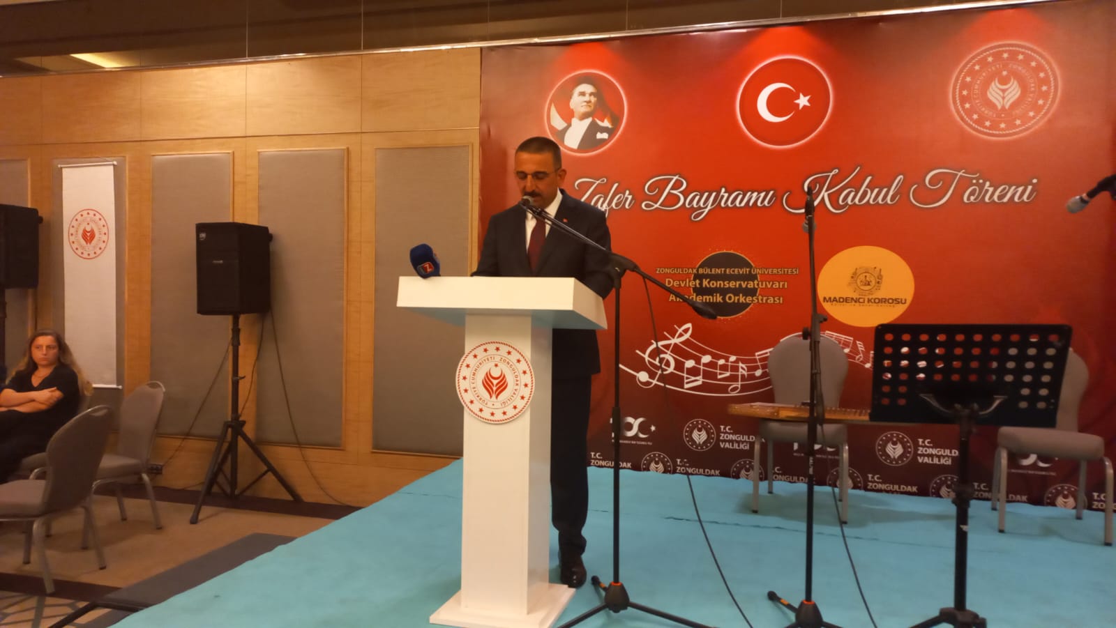 Resepsiyonda bir konuşma yapan Zonguldak Valisi Osman Hacıbektaşoğlu,”30 Ağustos Zafer bayramının 101 yıl dönümü etkinliğine geldiğiniz için teşekkür ediyorum. 30 Ağustos Zaferinin 101 yılını cumhuriyetimizin kurucusu Gazi Mustafa Kemal Atatürk önderliğinde Kahraman ordumuzun azmi ve inancı ile kahramanlık destanı yazılmıştır. Kurtuluş Savaşının en önemli günü 30 Ağustos’tur. 30 Ağustos var oluş destanıdır. Bir milletin küllerinden doğuşunun sembolüdür” dedi. (Burcu SAK)
