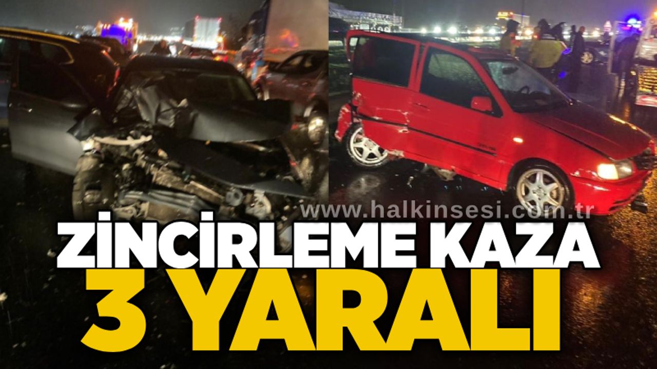 Anadolu Otoyolu'nun Düzce kesimi Ankara istikametinde yağmur nedeniyle kayganlaşan zeminde zincirleme kaza meydana geldi. 5 aracın karıştığı kazada 3 kişi yaralandı. İhbar üzerine olay yerine Otoyol Jandarması ve sağlık ekipleri sevk edildi. Yaralılar, olay yerinde yapılan ilk müdahalenin ardından ambulanslarla Düzce Atatürk Devlet Hastanesi'ne nakledildi. Jandarma tarafından güvenlik önlemleri alınan yolda trafik bir süre tek şeritten kontrollü sağlandı. Araçların bulunduğu yerden kaldırılmasının ardından trafik normal seyrine döndü.