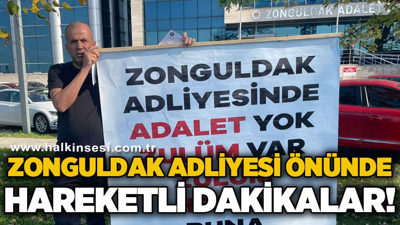 Zonguldak Adliyesi önünde elinde “Zonguldak adliyesinde adalet yok, zulüm var zulüm” yazılı pankartla açıklama yapan Güneş, şu ifadeleri kullandı: