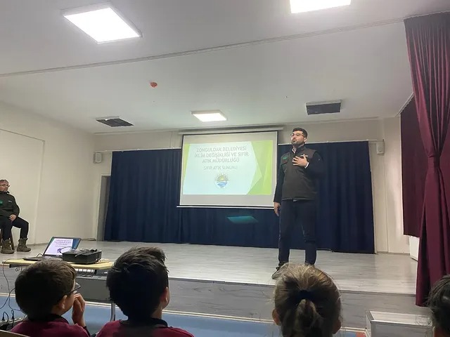 Zonguldak Dr. Derviş Nihat Arkat İlkokulu’nda, Zonguldak Belediyesi İklim Değişikliği ve Sıfır Atık Birimi tarafından çevre eğitimi düzenlendi. Çevre Mühendisi Doğukan Güney'in verdiği eğitim programı, 2. sınıf öğrencilerine yönelik olarak gerçekleştirildi.