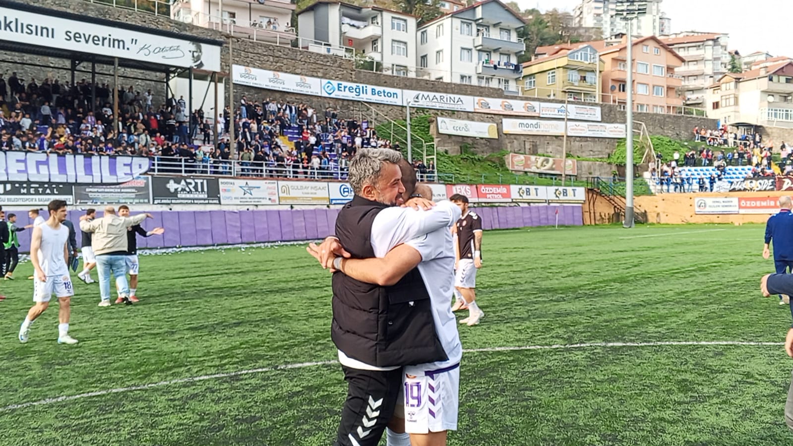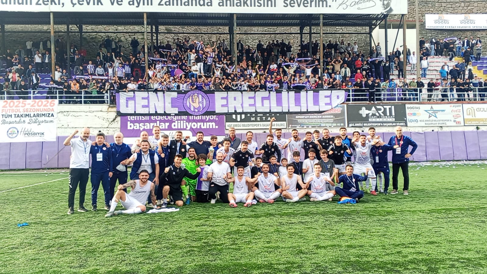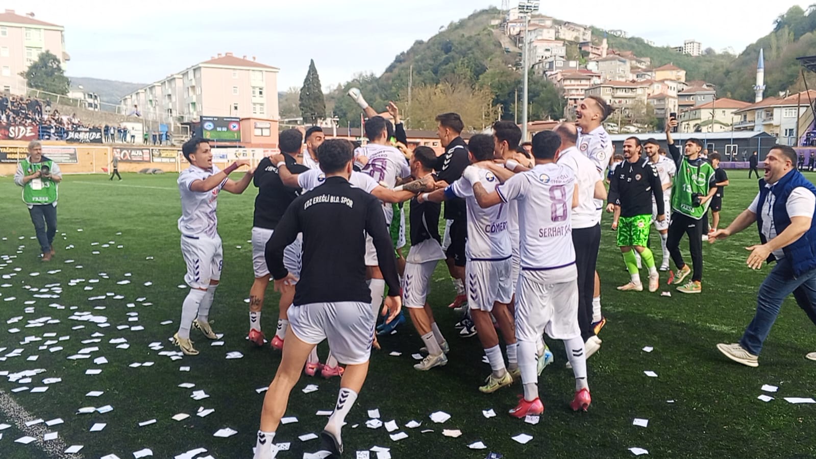 DERBİYİ KAZANAN KDZ EREĞLİ BELEDİYESPOR, 3 PUANIN SEVİNCİNİ TARAFTARI İLE BİRLİKTE KUTLADI