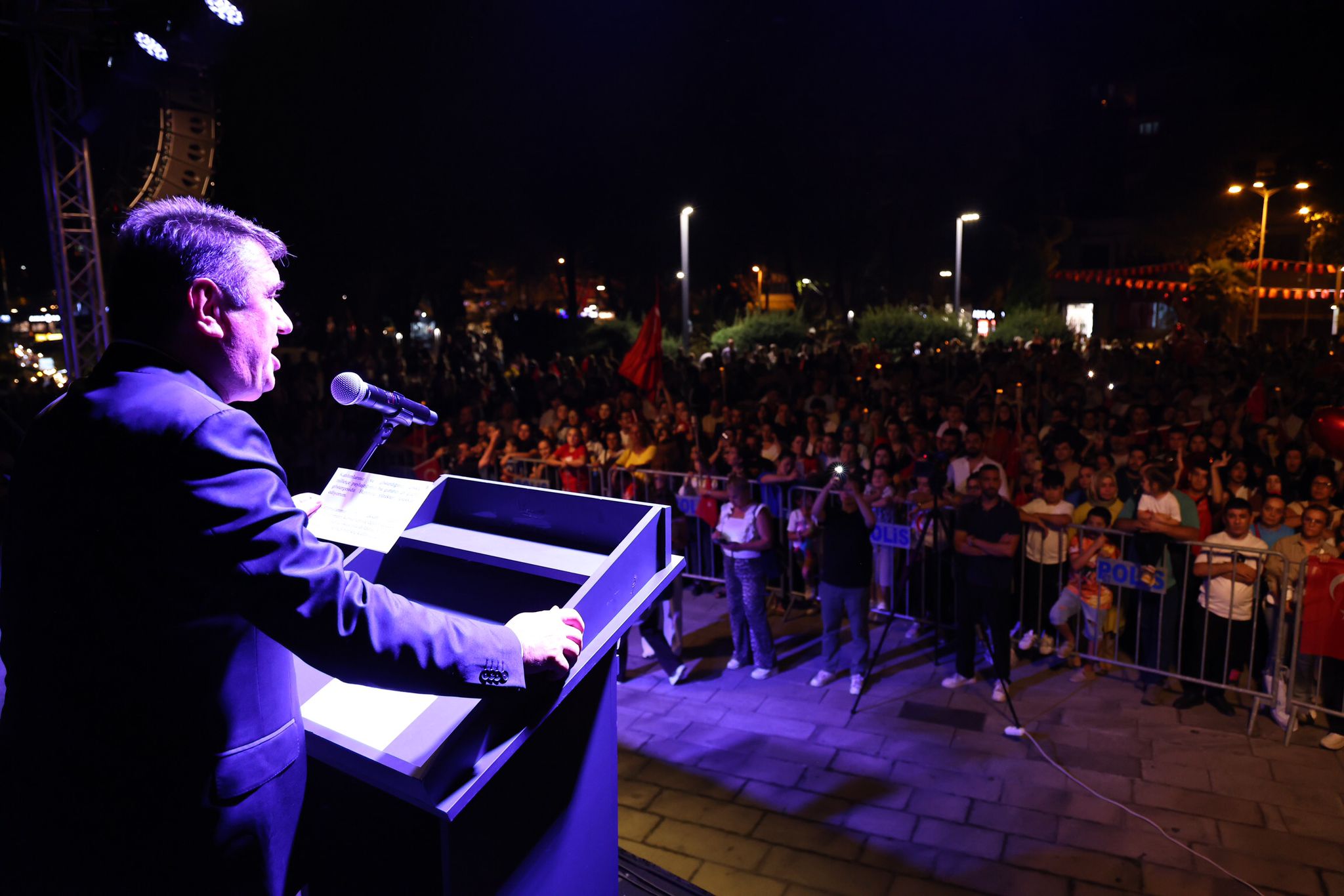 Alanı dolduran yüzlerce hemşehrimiz, zafer şarkılarına eşlik ederek unutulmaz bir gece yaşadı.