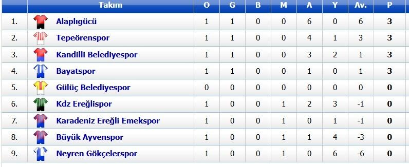 EREĞLİ GRUBU PUAN DURUMU
