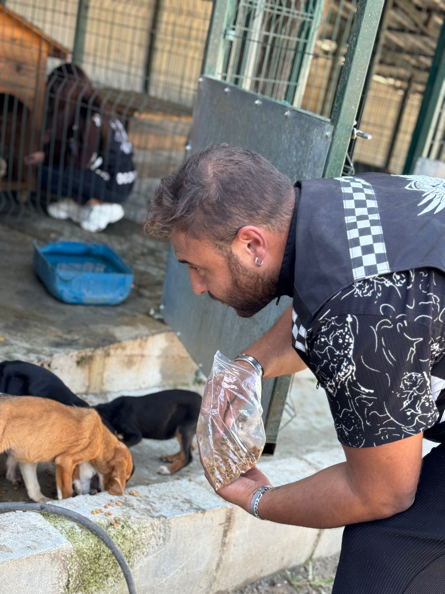 Motosikletli üyelerle birlikte barınağa mama desteğinde bulunan dernek üyeleri, özellikle yavru köpeklerle yakından ilgilenerek sevimli dostlara sevgi dolu anlar yaşattı.