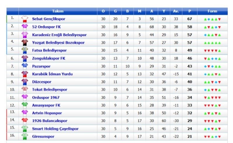 Öte yandan 46 puanla sezonu 6. sırada tamamlayan bir diğer temsilcimiz Zonguldakspor ise play-off hattının dışında kalarak üst lig şansını kaçırdı.