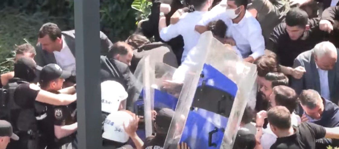 CHP Genel Başkan Yardımcısı ve Zonguldak Milletvekili Deniz Yavuzyılmaz ve Eylem Ertuğrul, CHP İstanbul İl Başkanlığı Binası önünde polis bariyerlerinde yaşanan arbede sonucu ortada kalarak yoğun biber gazına maruz kaldı. Yavuzyılmaz'ın üstüne kapanan Ertuğrul ve çok sayıda partili yönetici, yaklaşık 5 dakika boyunca yaşanan arbedede zor anlar yaşadı. O anlar kameralara yansıdı.