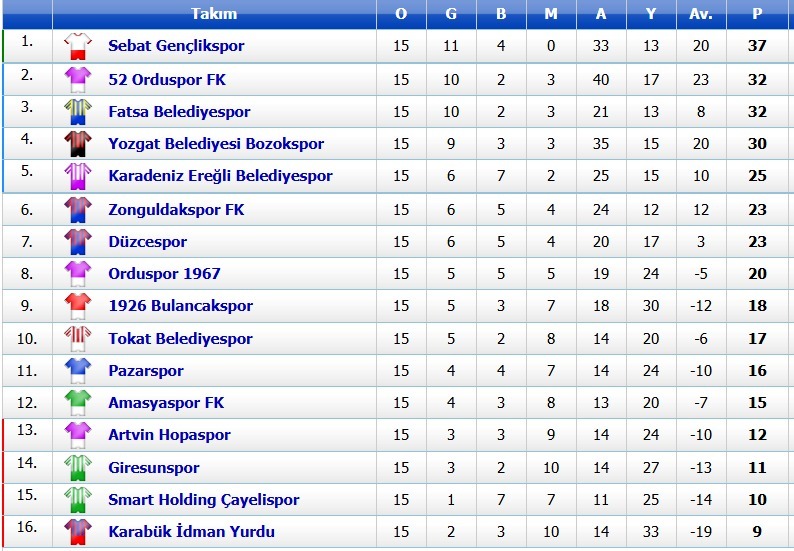 Tokat Belediyespor ise ligde oynadığı 15 karşılaşmada 5 galibiyet, 2 beraber ve 8 mağlubiyeti bulunuyor. Tokat Belediyespor 15 maçta kalesinde 20 gol görürken, rakip filelere ise sadece 14 gol atabildi.