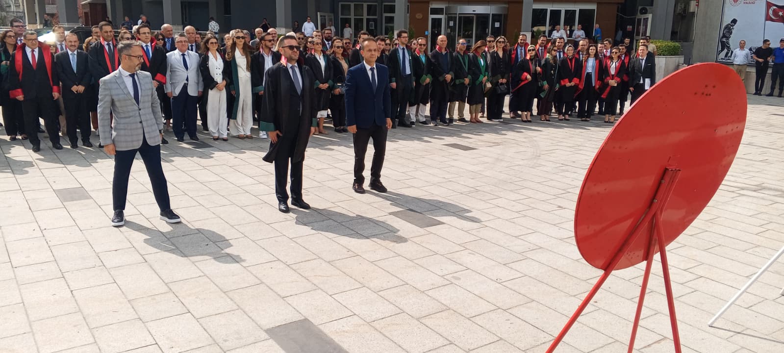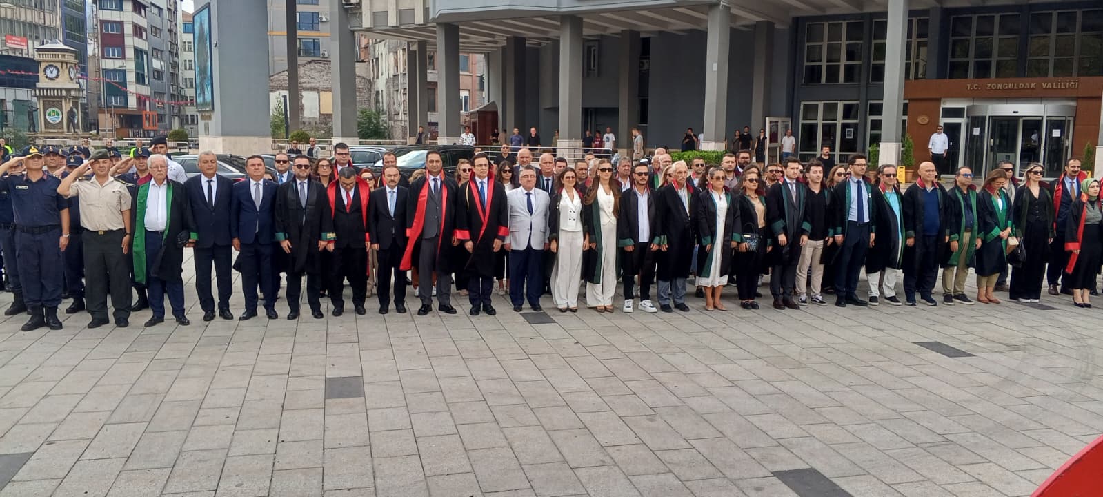 Zonguldak Barosu, adli yıl nedeniyle Valilik önünde açılış töreni düzenledi. Açılış töreni, Cumhuriyet Başsavcısı Gökhan Kapağan ve Baro Başkanı Türker Kapkaç’ın çelenk sunması sonrasında saygı duruşu ve İstiklal Marşımızın okunması ile başladı.