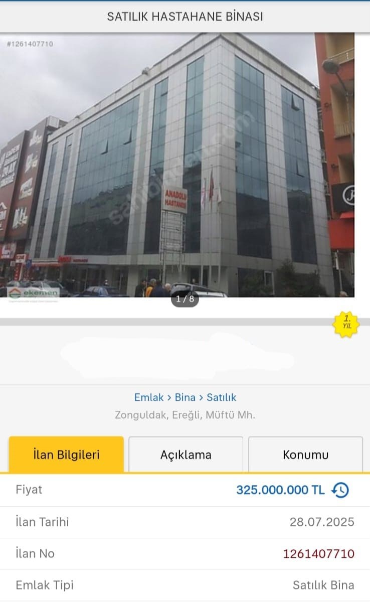 Müftü Mahallesi'nde bulunan Anadolu Hastanesi binası satışa çıkarıldı. 8 katlı bina için 325 milyon TL fiyat belirlendi. Hastane binasının bir emlak ilanıyla satışa konulması, ilçe kamuoyunda tartışmalara sebep oldu.