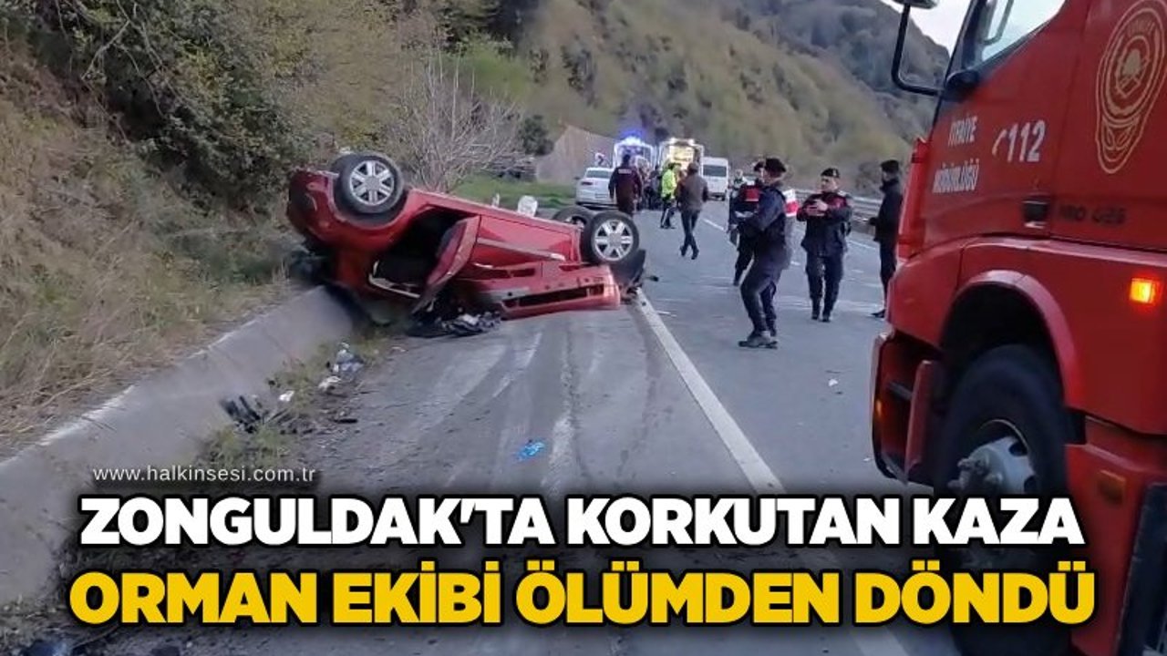 Alaplı ilçesinde meydana gelen trafik kazasında Orman İşletme personelini taşıyan araç takla attı.