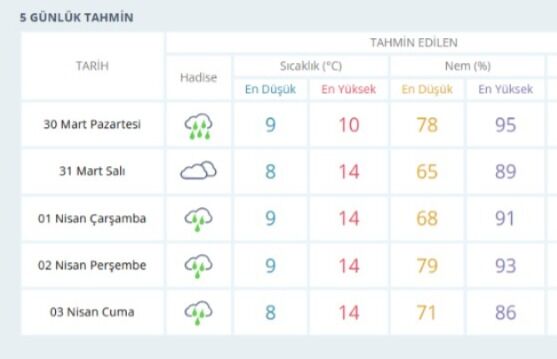 Bugün kent genelinde yağmur beklenirken, salı günü hava parçalı bulutlu ve yağışsız geçecek. Ancak çarşamba gününden itibaren yeniden başlayacak olan sağanak yağışın cuma gününe kadar etkisini sürdürmesi öngörülüyor.
