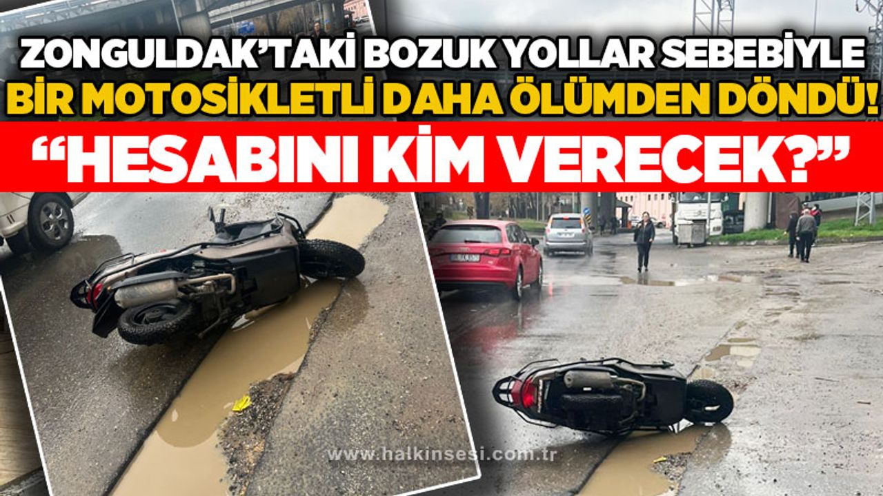Motosikletini yeni aldığını ve yollardaki bozukluklar sebebiyle sürekli kaza atlattığını belirten sürücü C.A., "Beklediğim oldu, bozuk yollar motorumu mahvetti. Motorumda küçük çaplı da olsa hasar oluştu. Ben ölümden döndüm. Bunun hesabını kim verecek? Zonguldak'ın her yeri delik deşik. Bu rezalete kim son verecek? Sizin de evlatlarınız araç kullanıyor, onların da başına yollar sebebiyle bir kaza geldiğinde hesabını kendinize sorarsınız." diyerek yetkililere sitem etti.